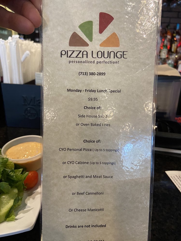 Pizza Lounge, located in Pasadena, TX, is a must-visit for pizza lovers. Offering a variety of Italian dishes, sandwiches, and a full bar, this restaurant has it all. Customers rave about the excellent service, fresh food, and inviting atmosphere. The reviews highlight the delicious pizzas, wings, veal, lounge pasta, and lounge martinis, all served in generous portions at great prices. The staff, including standout waiter Chase, ensure a pleasant dining experience with quick service and friendly demeanor. With features like outdoor seating, free Wi-Fi, and covered seating, Pizza Lounge caters to everyone. Whether you're looking for a casual meal or a special date night spot, Pizza Lounge delivers on both taste and ambiance. Make sure to try their mouth-watering cheesecake and enjoy a memorable dining experience at Pizza Lounge.